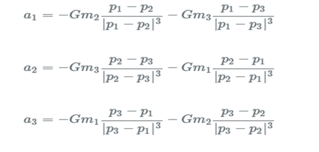 Where G is the gravitational constant and pi=(xi,yi,zi) and ai refers to the acceleration of pi such as: