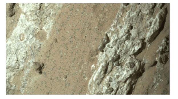 The leopard spots are found in rocks that also contain organic molecules, which are the chemical building blocks of life. On Earth, similar patterns can form when microbes interact with minerals in watery environments. This makes the
